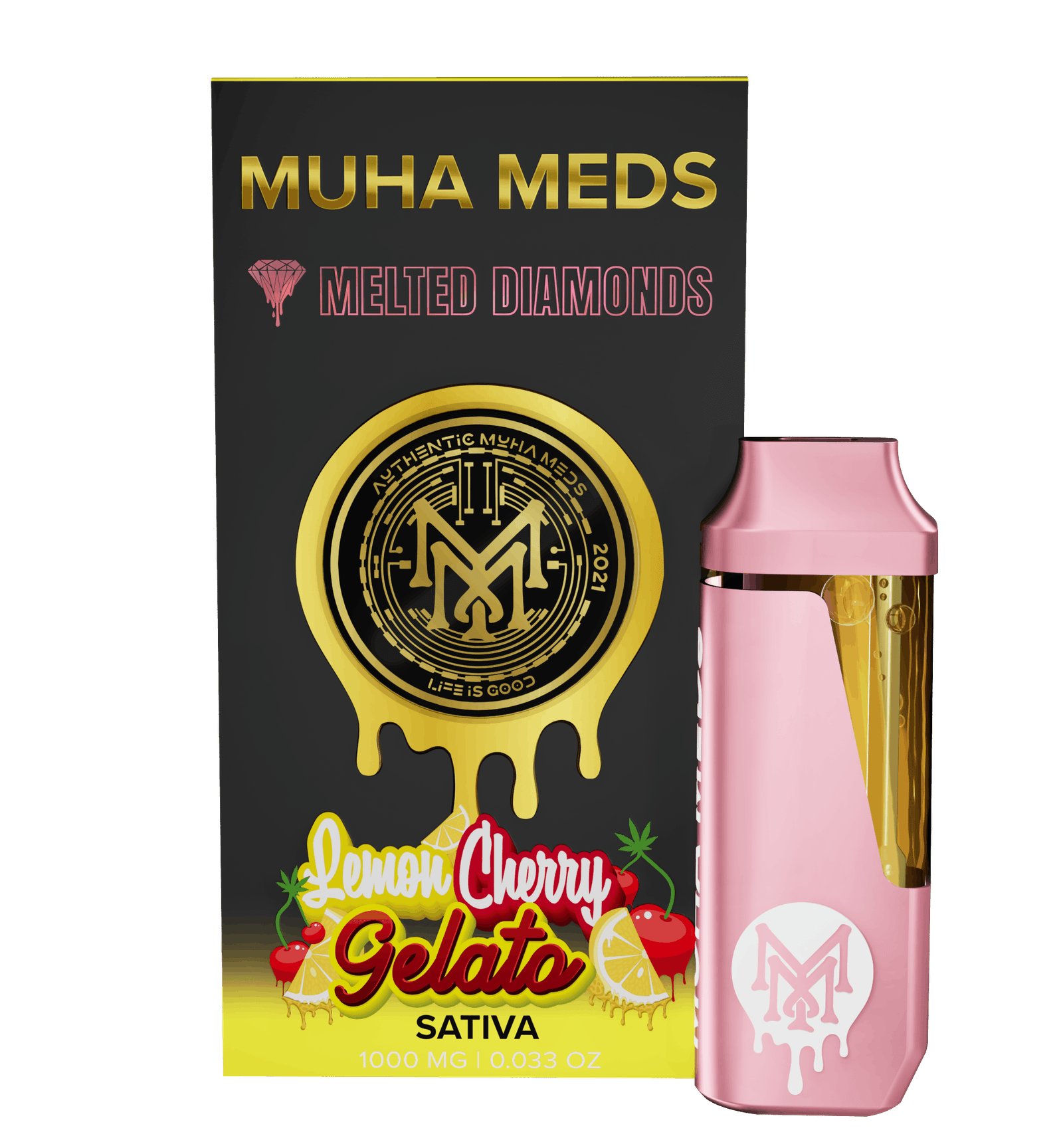 Add the Muha Meds Lemon Cherry Gelato Melted Diamonds Disposable 1000MG to your cart now and experience powerful melted diamonds potency with delicious flavor.